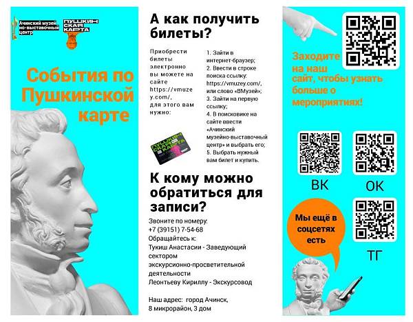 Филиал «Ачинский музейно-выставочный центр» приглашает вас принять участие в акции «Пушкинский марафон», направленной на продвижение и реализацию программы «Пушкинская карта» среди молодёжи города Ачинска.