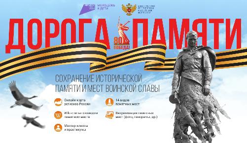 О Конкурсе: Всероссийский конкурс «Дорога Памяти. Сохранение исторической памяти и мест воинской славы» реализуется в 80-ую годовщину Победы в Великой Отечественной войне, в рамках национального проекта «Молодежь и дети», федерального проекта «Мы вместе» при поддержке Министерства просвещения Российской Федерации.