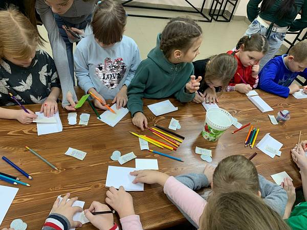 Затем ребята отправились в коворкинг на мастер-класс разукрашивать свои «кошелёчки», в которых уже находились «круглые металлические и бумажные рубли» и «банковские карты».