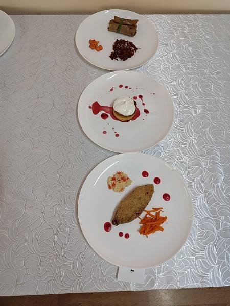 В течение 3,5 часов необходимо было приготовить и подать, учитывая температуру подачи, массу порции, три порции горячего блюда из птицы, три порции холодной закуски из куриной печени, приготовить 3 порции десерта на основе песочного теста.