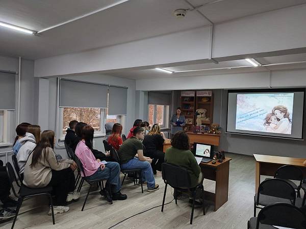 26 ноября, в рамках курса «Семьеведение», с целью формирования у обучающихся понимания традиционных российских семейных ценностей, преемственности поколений, взаимоуважения и взаимопомощи в семье, студенты техникума, проживающие в общежитии 2, посетили юношескую библиотеку, где состоялся тематический час «Все на земле от материнских рук».