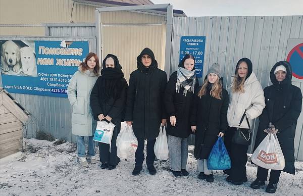 Ребята, проживающие в общежитии, добровольно собрали денежные средства, на которые закупили необходимые материалы: крупа, корм, пелёнки и др.