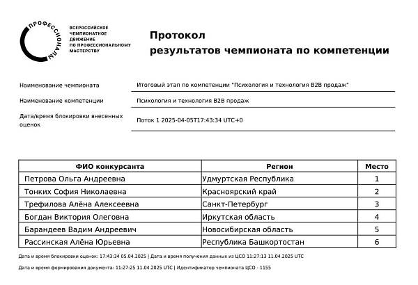 Итоговый (межрегиональный) этап чемпионата Профессионалы-2025» в Нижнем Новгороде по компетенции «Психология и технология В2В продаж»