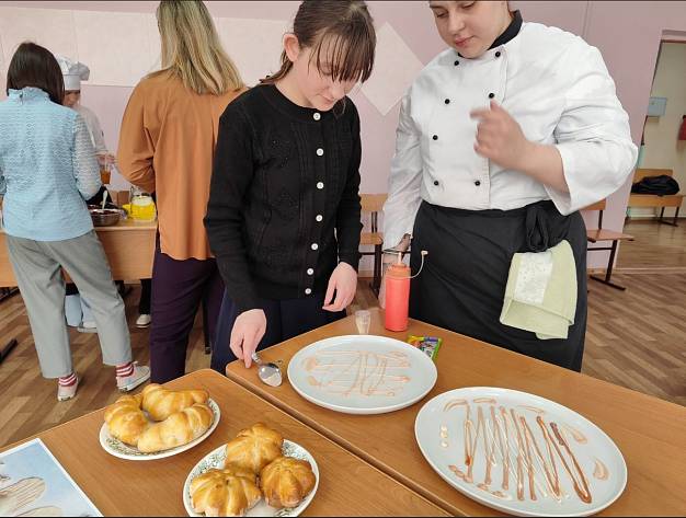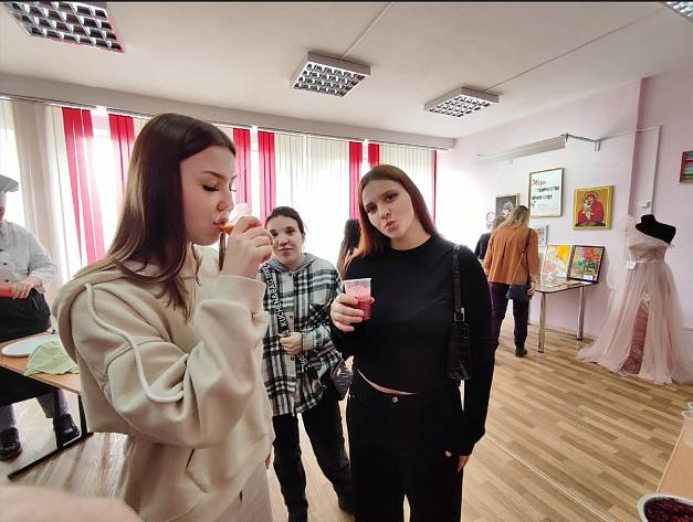 Ведущие преподаватели и мастера производственного обучения провели ребятам экскурсию по мастерским, познакомили с выставкой декоративно-прикладного искусства, показали способы украшения блюд соусом и угостили полезными коктейлями, рассказали об условиях поступления в техникум и условиях обучения.