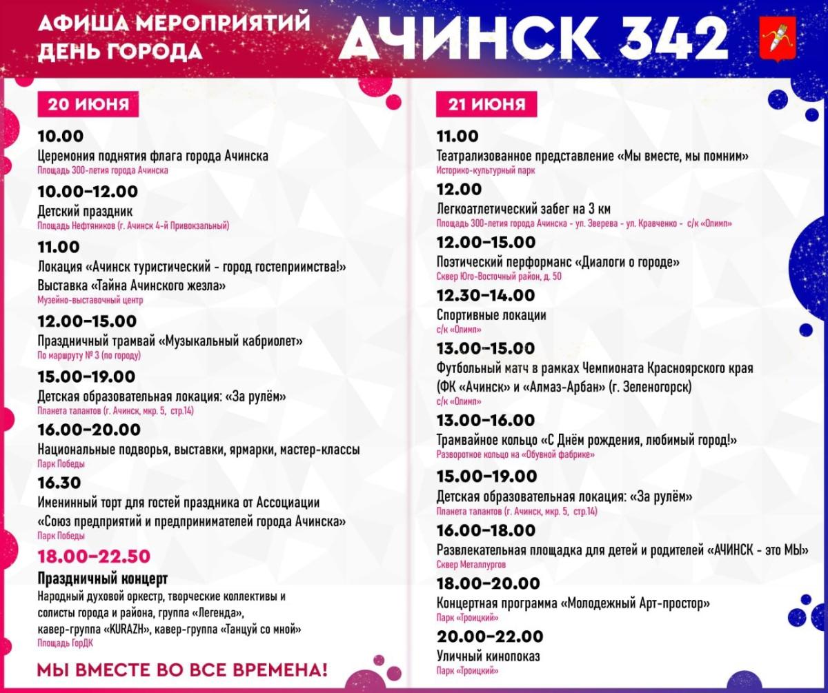 20 июня 2025 года определен днем празднования 342-ой годовщины со Дня образования г. Ачинска.