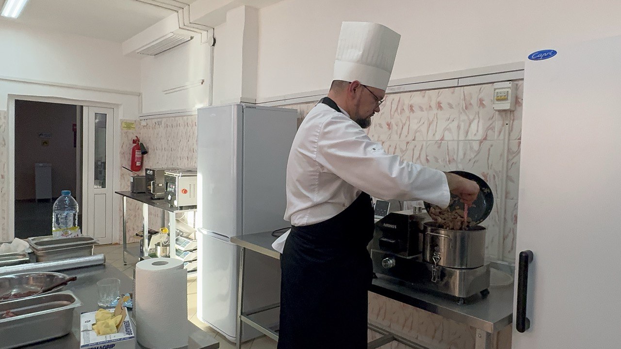 Ребята смогли узнать секреты кулинарного мастерства по приготовлению блюд из субпродуктов от профессионала, перенять опыт и задать интересующие вопросы. В течение всего мастер-класса Антону помогали студенты группы 3ПК1-9-22 Богданов Данила, Лозовская Виктория, а также студент группы 2ПК2-9-23 Черкасов Евгений.