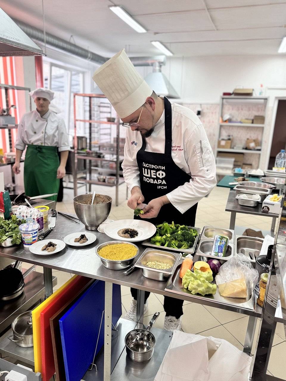 27 ноября в учебно-производственных мастерских, в рамках реализации проекта Создание центра профессионально-практической подготовки в области индустрии питания «Кухня управления будущим», прошло очередное мероприятие. Для педагогов и студентов по профессии «Повар, кондитер» и специальности «Поварское и кондитерское дело» состоялся мастер-класс от бренд-шефа компании ООО «АЙЭФСИЭМ ГРУПП» Журавлева Антона Аркадьевича (г. Москва).
